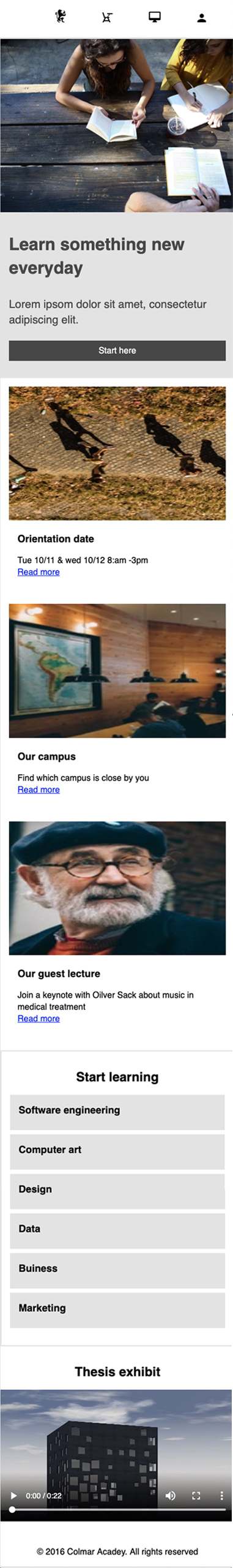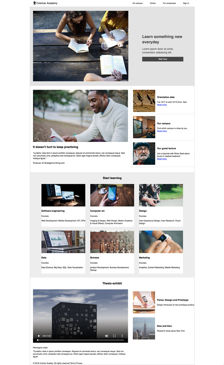 This Webpage is my final project. Here's a sample of everything I have learned throughout my courses of coding. May look simple, yet it wasn't an easy task. There's a small video. Which I had to figure out the proper way to code and make it work. On top of that theres the fact that is also has to be resposive to the site. This page is responsive feel free to play with it. Click here to see live webpage. Click back button when done :) .
