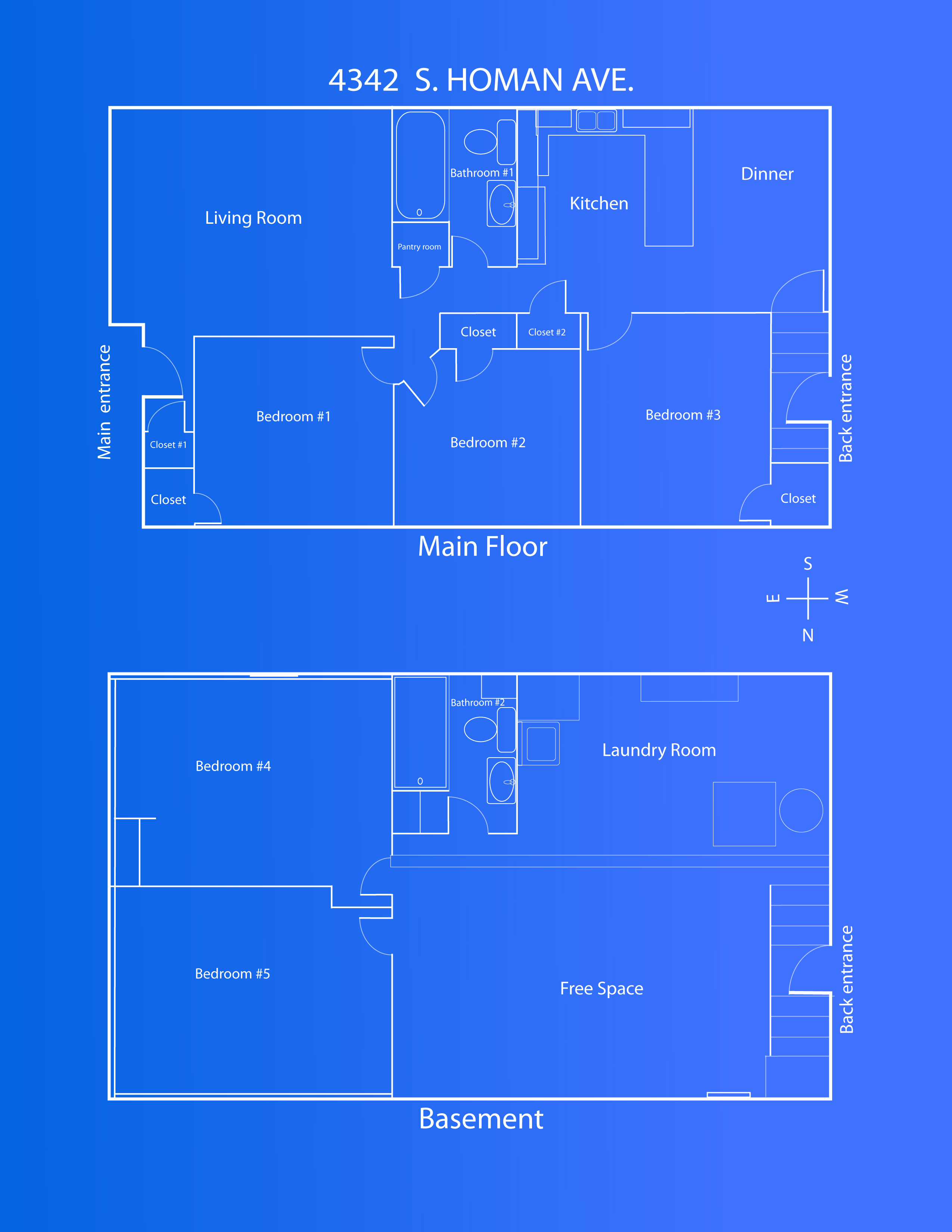 House Blue Prints. Perfect for new guest not knowing where the bathroom is located. Gave me the idea to creat a blue print. Labeling what each door lead to what room. Giving it a "You are Here" sticker, after being printed. Till this day the blue print is still hanged up.