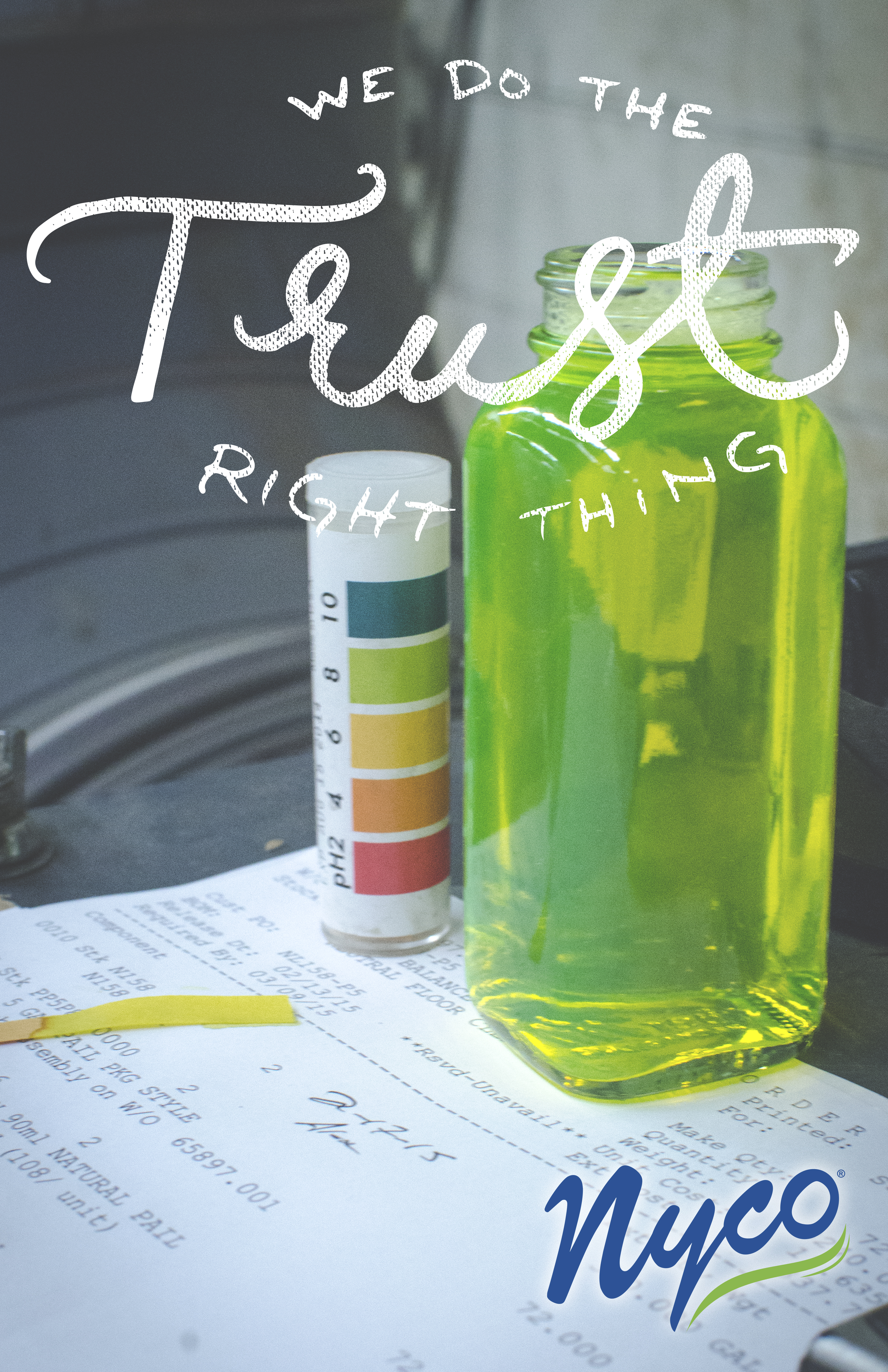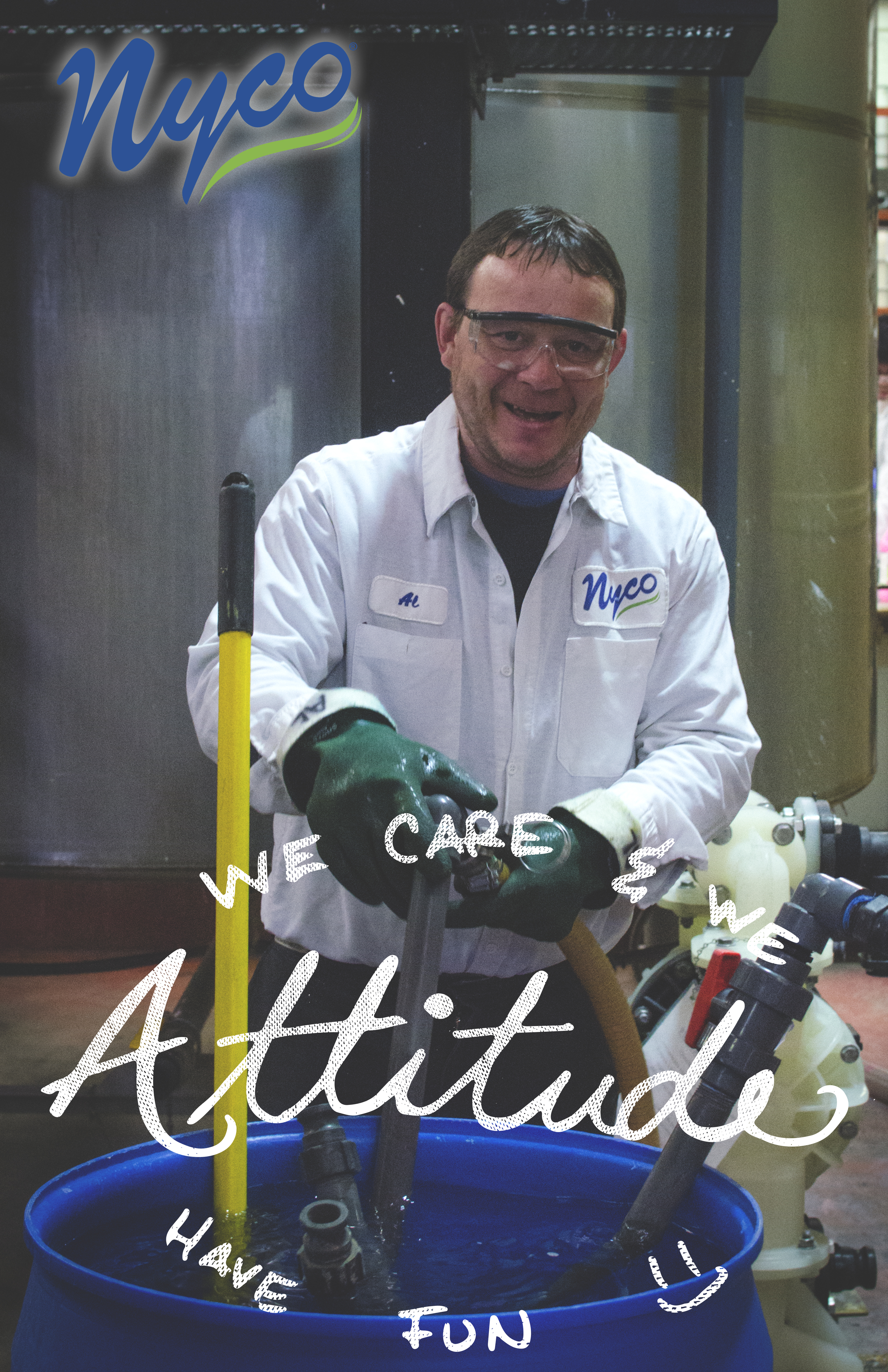 Took initiative to convert a plain text poster 8.5X11 into these creative posters. For the "Trust" poster I took a photo of a PH meter wtih a sample of the product to show Nyco delivers good product. With the "Quality" poster I took a photo of line pruction coming out at its finest. With the "Attitude" poster I took a photo of a coworker that has the worse attitude. Being a bit grumpy most of the time and yet he managed to smile in this image. With the "Team" poster I used an old photo of two coworkers. Capturing them at the best time. Made custom type to go with the images.